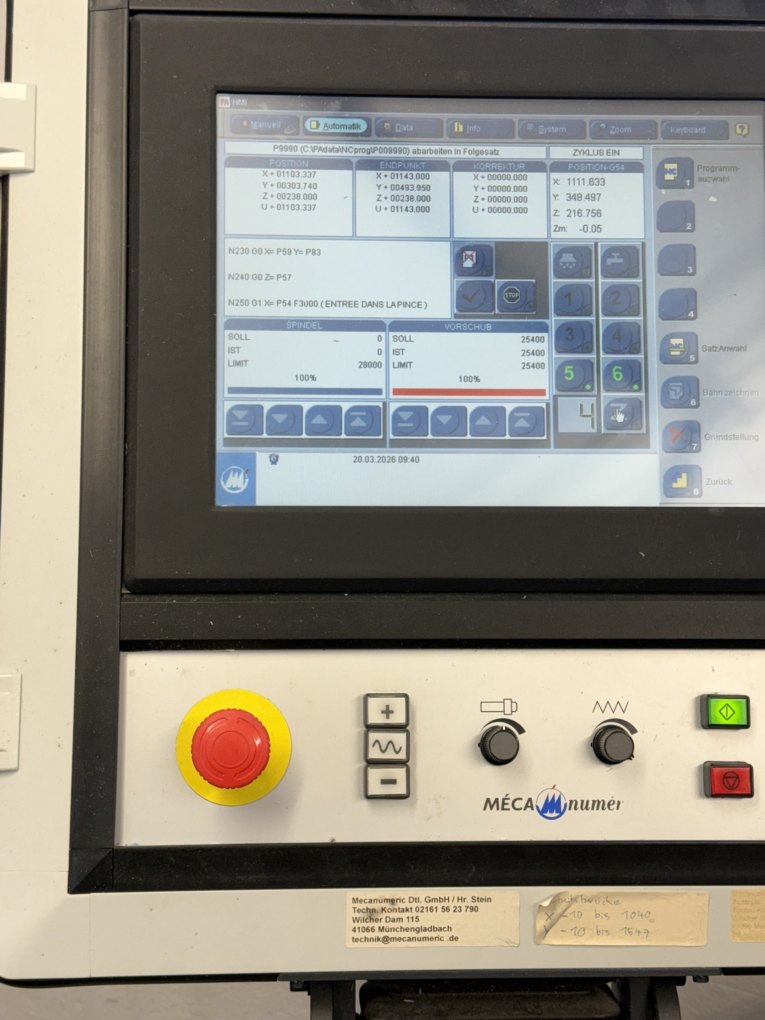 - Numerische Steuerung: Mecanumeric CN 7000 ISO